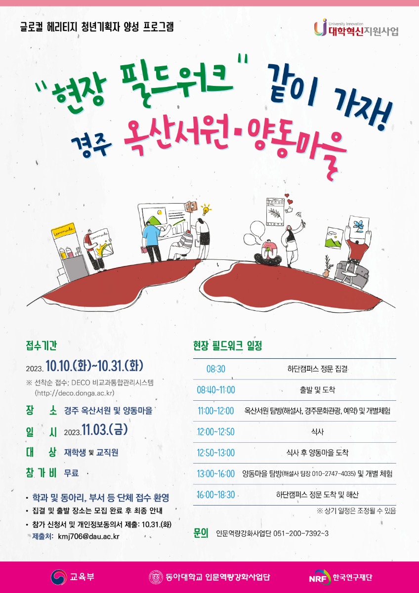 [인문역량강화사업단] “현장 필드워크” 같이 가자! 경주 옥산서원·양동마을(~23.10.31.)