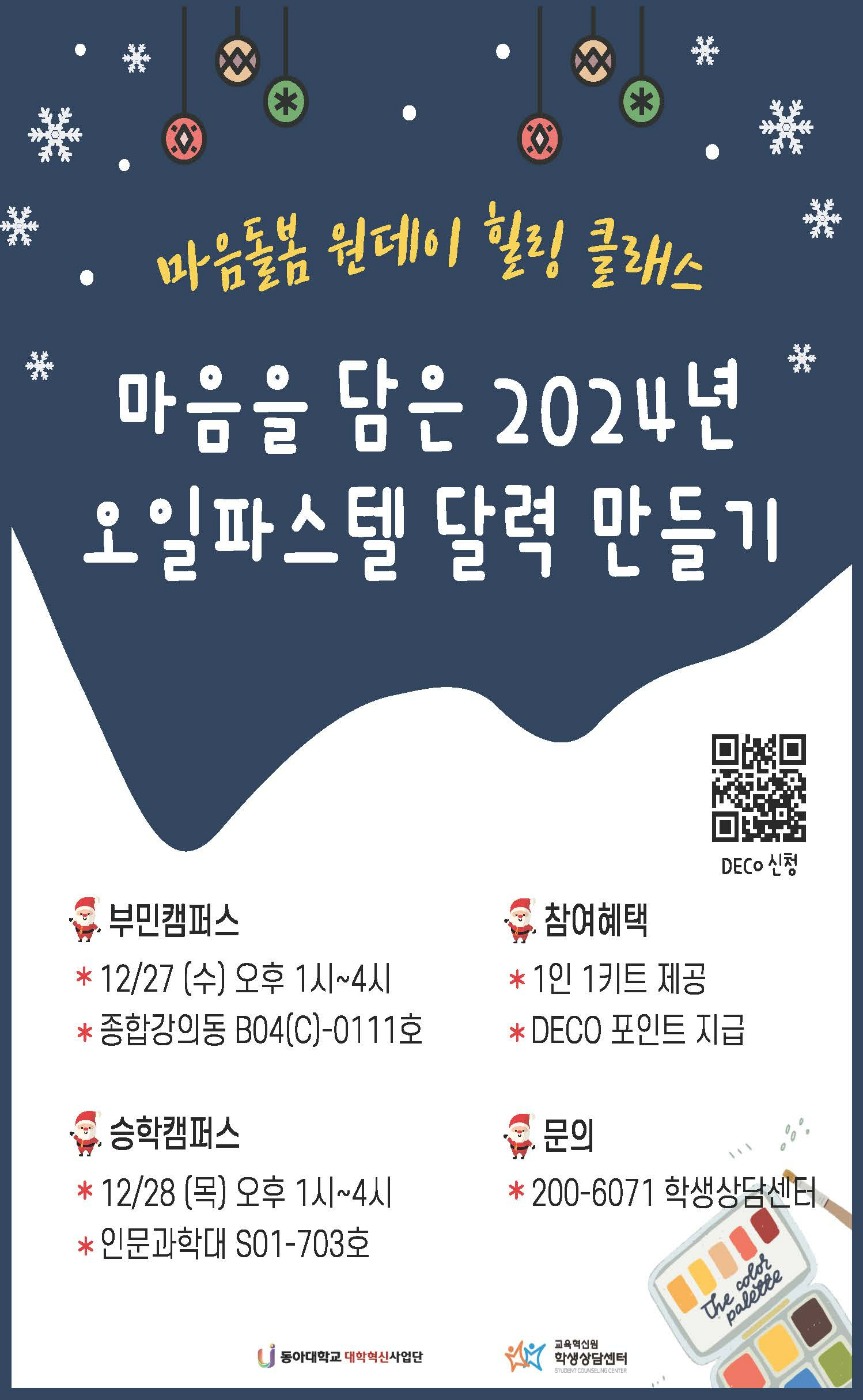 [학생상담센터] 마음돌봄 원데이 힐링클래스 마음을 담은 2024년 오일파스텔 달력 만들기 (23.12.27., 28.)