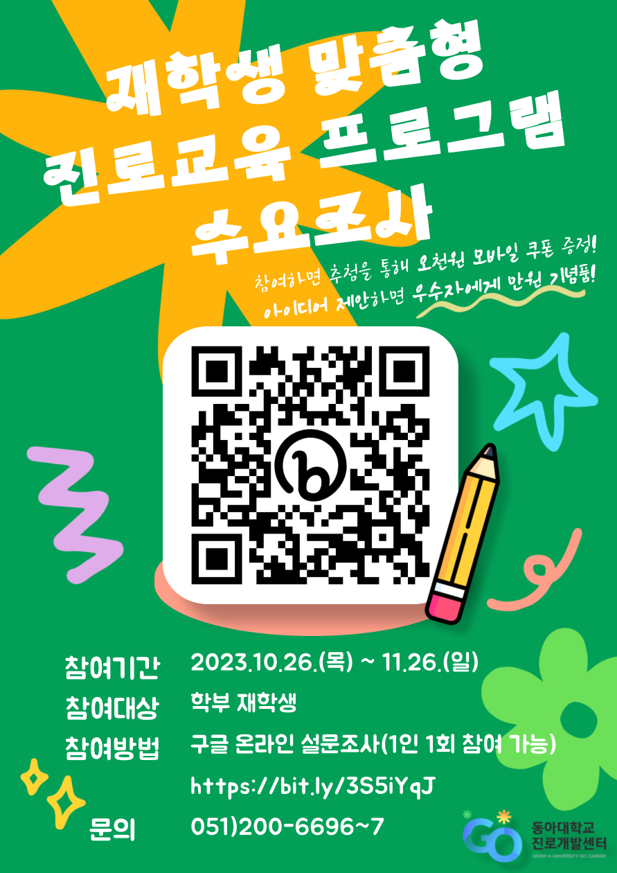 [진로개발센터] 2023학년도 재학생 맞춤형 진로교육 프로그램 수요조사 (~23.11.26.)